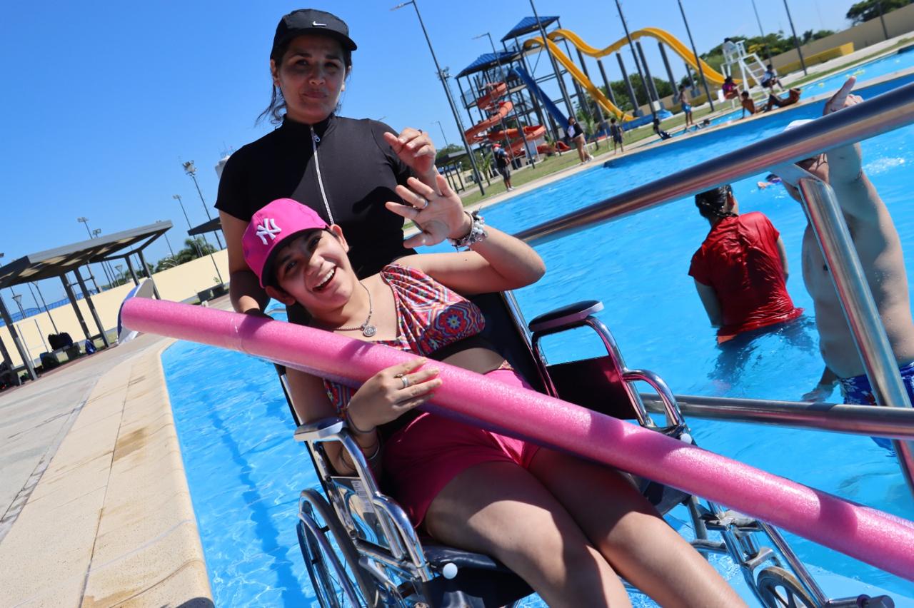 Al respecto, la ministra explicó que las propuestas destinadas a personas con discapacidad no se limitan únicamente al Parque Acuático “17 de Octubre”, sino que también incluyen actividades del programa “Verano Accesible”, que se desarrollan en las instalaciones del camping de la Asociación Mutual de Empleados del Instituto de Asistencia Social (AMEIAS).